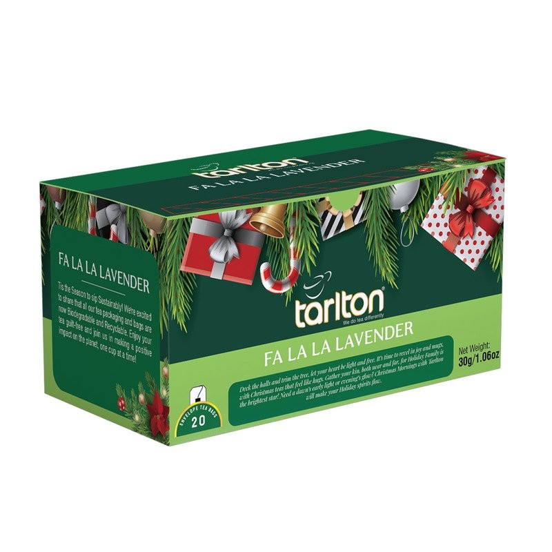 Созданный с особой тщательностью, чай Tarlton's Fa La La Lavender изготовлен из отборных вручную листьев зеленого чая, известных своим тонким вкусом и ярким характером. Цветки лаванды придают чаю нежную цветочную ноту, создавая успокаивающее и расслабляющее ощущение. Позвольте успокаивающим ароматам лаванды этого чистого цейлонского чая перенести вас в мир безмятежности с каждым глотком. Выбирая Tarlton, вы становитесь партнером в нашем стремлении к устойчивому развитию. С каждой покупкой вы активно участвуете в сокращении экологического следа, связанного с традиционной упаковкой чая. Это небольшое изменение, которое в совокупности имеет большое значение, и мы рады, что вы с нами.